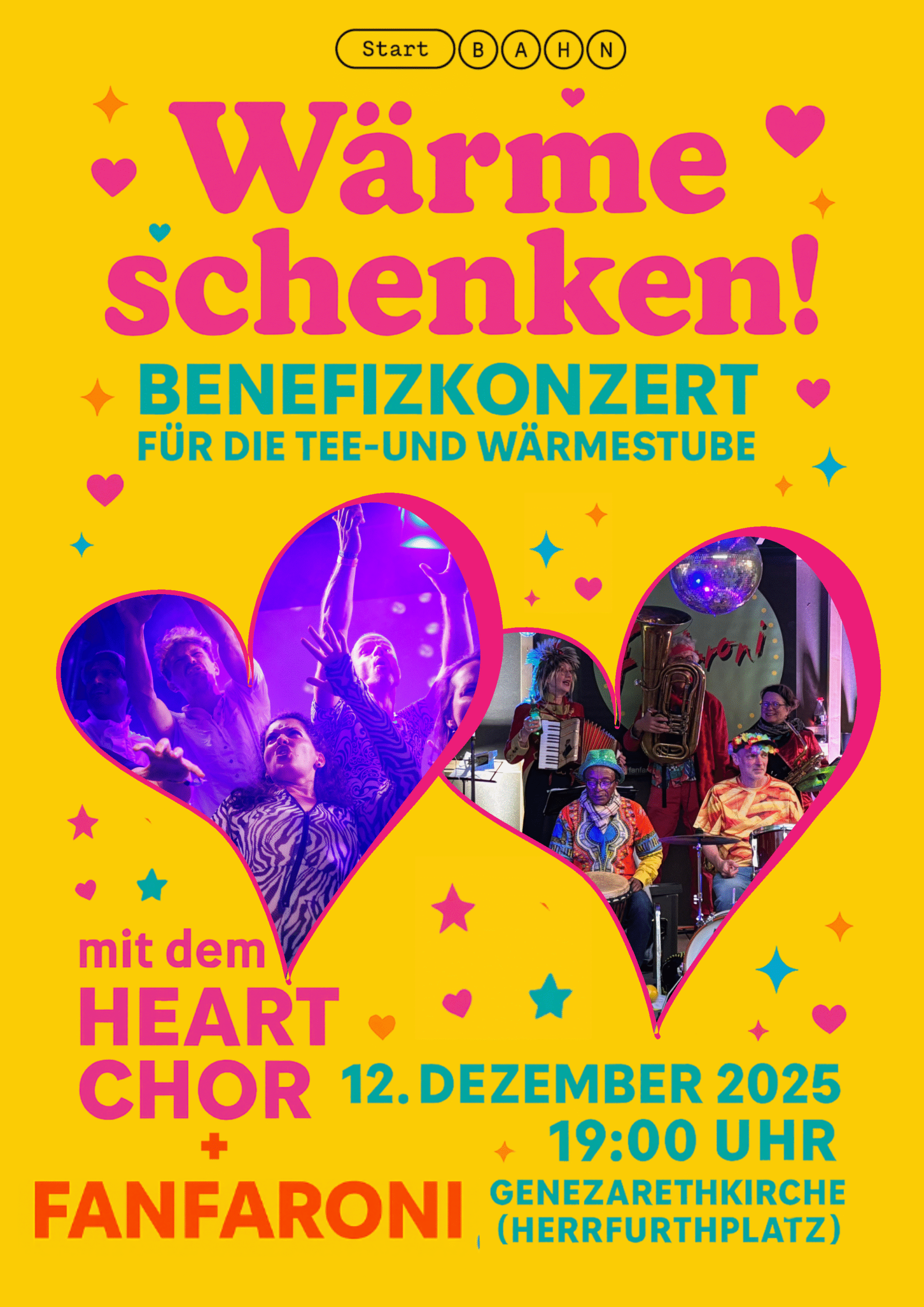 Am 12. Dezember verwandelt sich die Genezarethkirche in einen Ort voller Klang, Farbe und Solidarität. Unter dem Motto „Wärme schenken!“ laden wir zu einem besonderen Benefizkonzert zugunsten der Tee- und Wärmestube ein – einem wichtigen Zufluchtsort für Menschen ohne Wohnung in unserem Kiez.